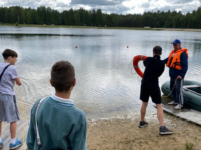 В ходе занятия, которое прошло на спасательном посту пляжа «Южный» в Ганцевичах, ребят обучили навыкам владения спасательными средствами.