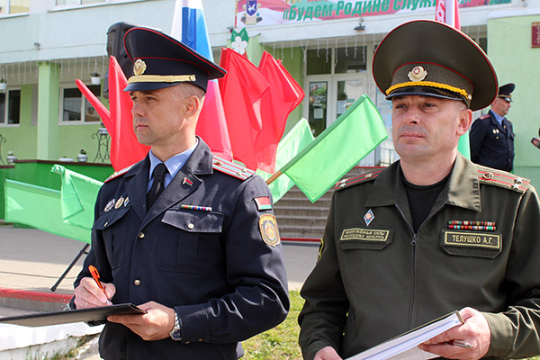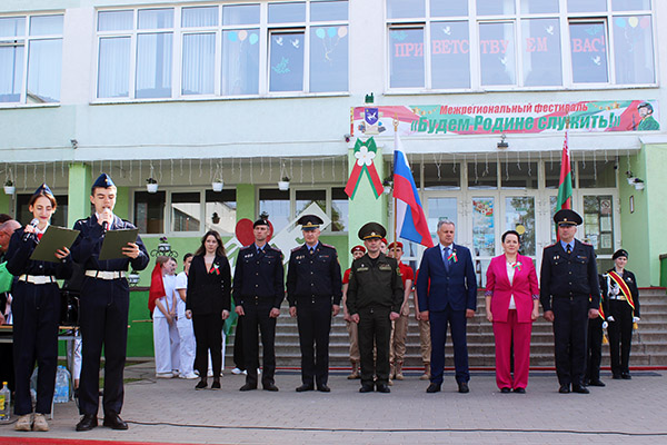 После митинга на городской площади участники межрегионального слета военно-патриотических клубов переместились в СШ № 3 г. Ганцевичи, где и прошло торжественное открытие мероприятия. Почетными гостями церемонии стали сотрудники УВД Брестского облисполкома: заместитель начальника – начальник милиции общественной безопасности полковник милиции Виталий Козлов и начальник отдела идеологической работы УВД Брестского облисполкома подполковник милиции Виктор Турчинович.
