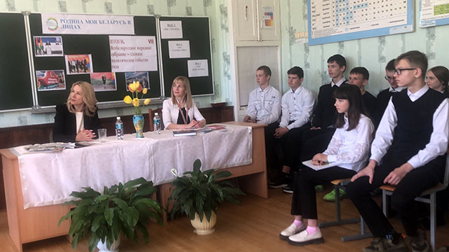 Учащиеся актуализировали свои знания по теме мероприятия посредством интерактивной викторины «Мы узнаём». В ходе диалога учащиеся узнали об участии почетных гостей в VII Всебелорусском народном собрании, о деятельности в качестве делегатов ВНС, жизненном кредо и гражданской позиции.