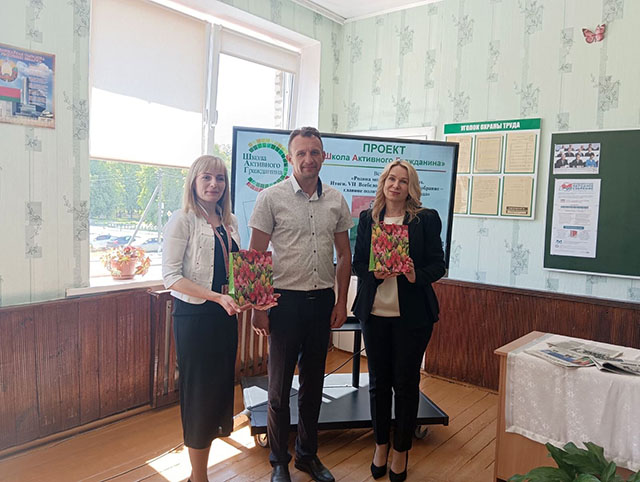 Алла Федоровна и Юлия Александровна в торжественной обстановке вручили подарочные издания «Я – гражданин Республики Беларусь» учащимся 8-го класса Карине Восколей и Сергею Радюку, подчеркнув важность гражданской активности и патриотизма, напутствовав ребят добрыми словами.