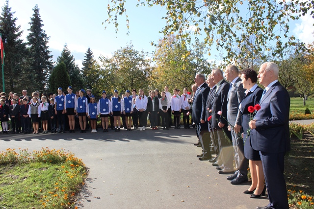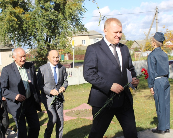 После этого делегация побывала в ГУО «Ганцевичская средняя школа имени Героя Советского Союза Антона Петровича Бринского», где приняла участие в торжественной линейке и возложила цветы к памятнику погибшим воинам и мемориальной плите А.П. Бринского.