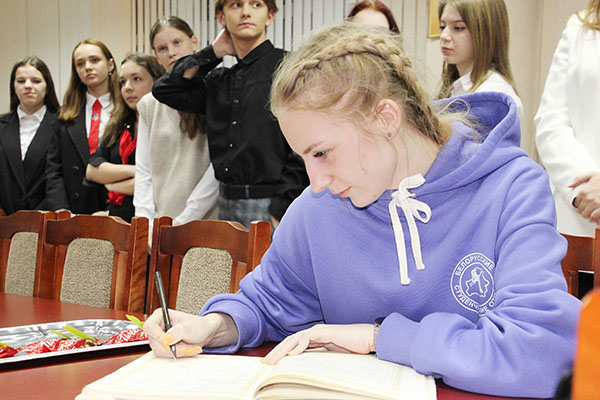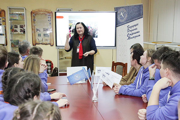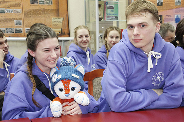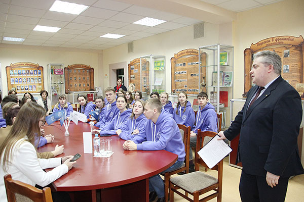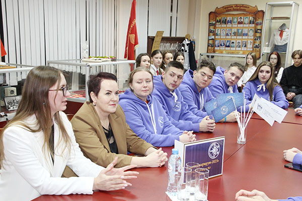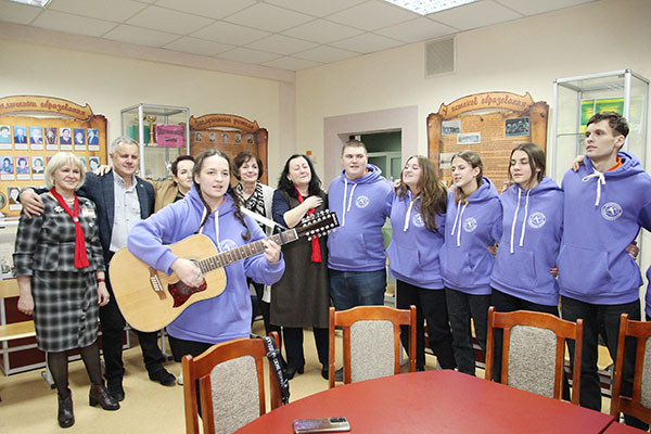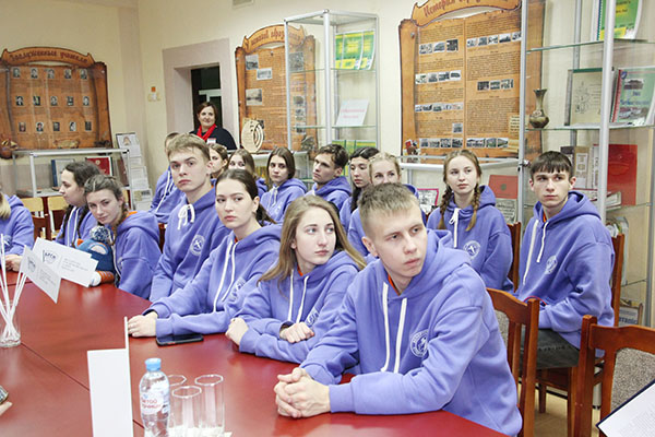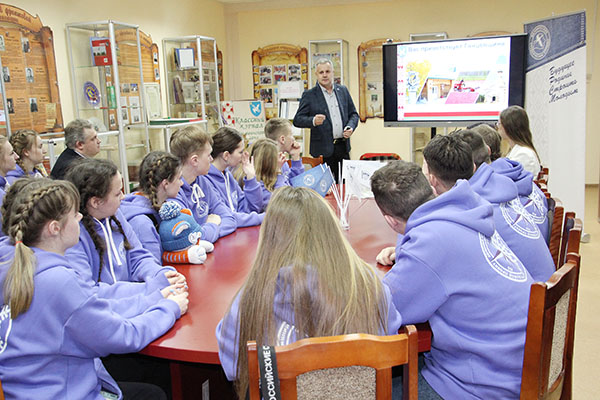 На Ганцевщине гостей встречали в СШ № 3. Здесь для бойцов отряда, 21 студента из восьми вузов Беларуси, провели экскурсию в музей истории развития системы образования нашего района. Здесь же, в музее, состоялась диалоговая площадка.