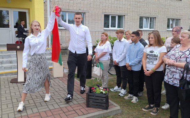 По традиции в честь начала нового учебного года был поднят Государственный флаг и прозвучал Государственный гимн Республики Беларусь.