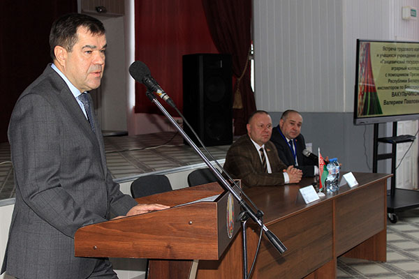 В честь 50-летия учреждения образования «Ганцевичский государственный аграрный колледж» на встречу с трудовым коллективом и учащимися приехал помощник Президента Республики Беларусь по Брестской области Валерий Вакульчик.