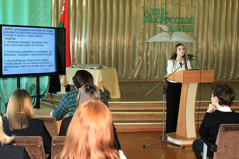 В актовом зале гимназии г. Ганцевичи учителя и учащиеся встретились, чтобы представить научно-исследовательские проекты на актуальные темы в разных отраслях науки.
