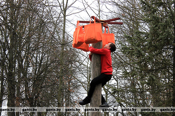 И, конечно же, по традиции был масленичный столб. Среди участников праздника нашлись смельчаки, которые сумели забраться на него за подарками.